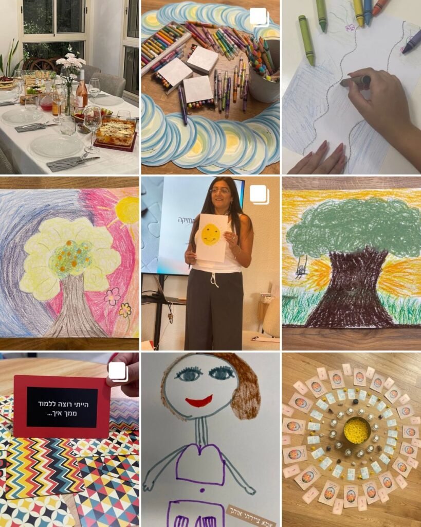 בסדנאות אינטימיות בקבוצות קטנות נצייר יחד מודלים מעולם הציור כגון – עץ, בית, משפחה, גשר, או דמות משמעותית בחיים.